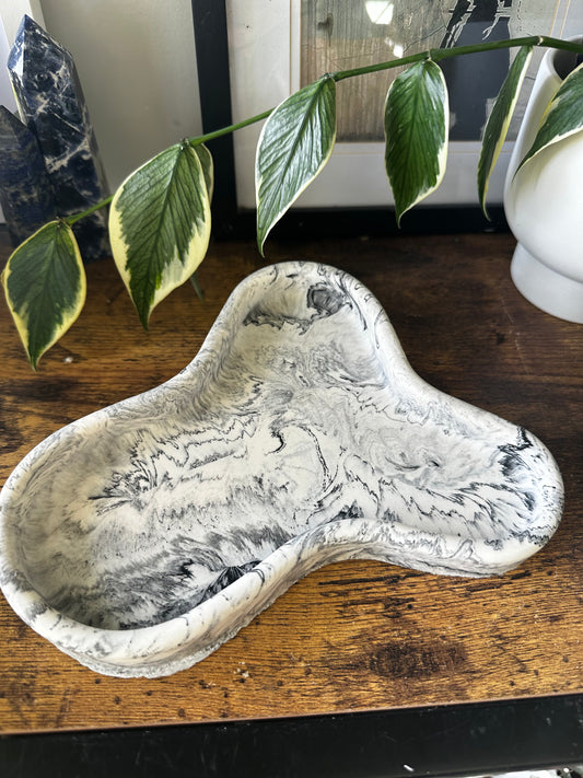 Jesmonite is a water-based composite material used to make decorative moulded objects. It is an eco resin, a material that replicates the beauty of natural stone while prioritizing environmental sustainability. Each piece is carefully mixed, poured, sanded & sealed by hand, ensuring unique patterns and textures that add a touch of elegance and sophistication to any space.