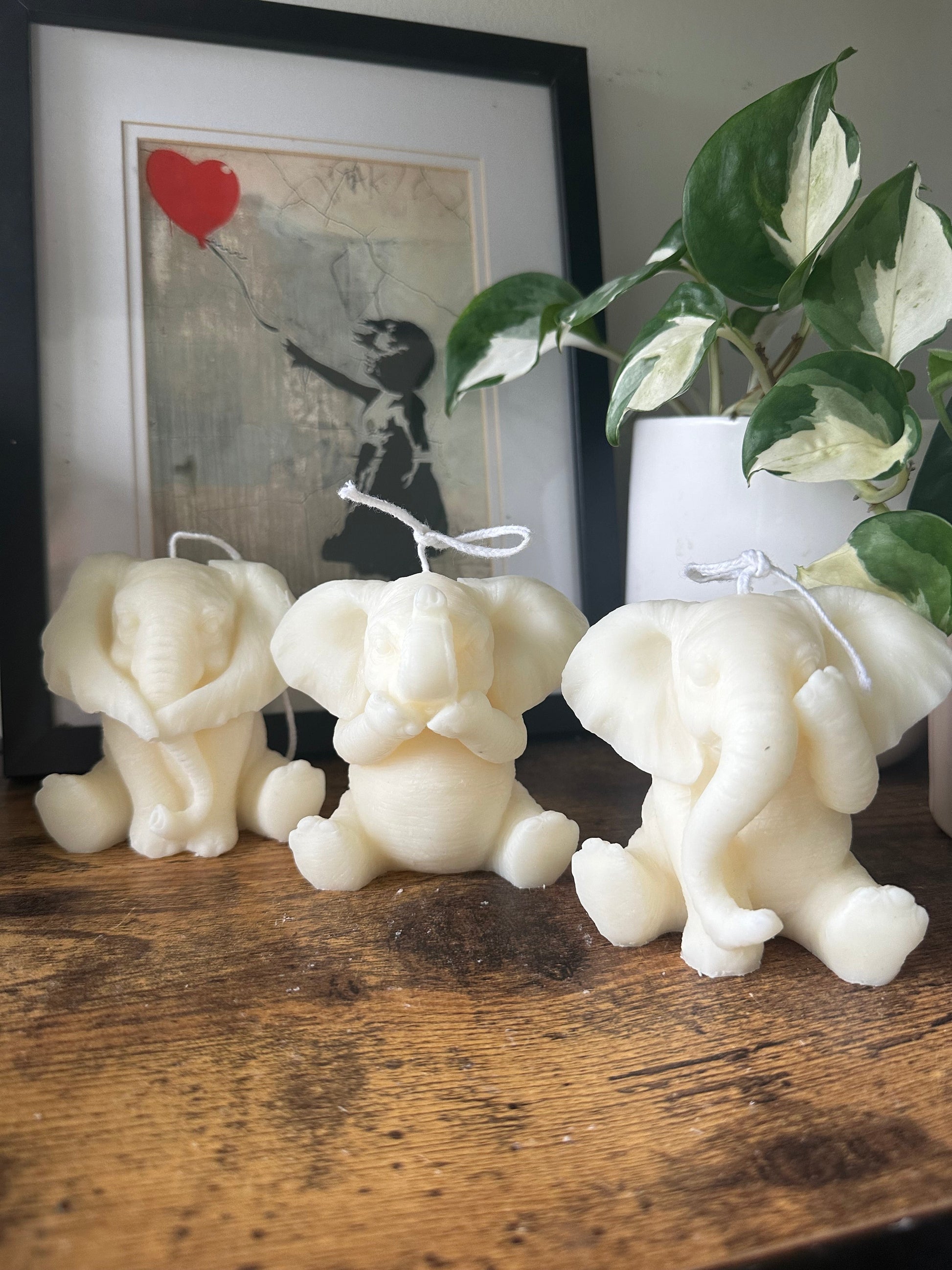 Elevate your decor with our exquisite Elephant Candle Set, featuring three intricately designed elephants that bring a touch of elegance and tranquillity to any room. Each candle is meticulously crafted from high-quality, eco-friendly wax, ensuring a clean, even burn with a soft, ambient glow. The elegant elephants, each detailed with a unique texture and finish, add a sophisticated charm while symbolising wisdom and strength.