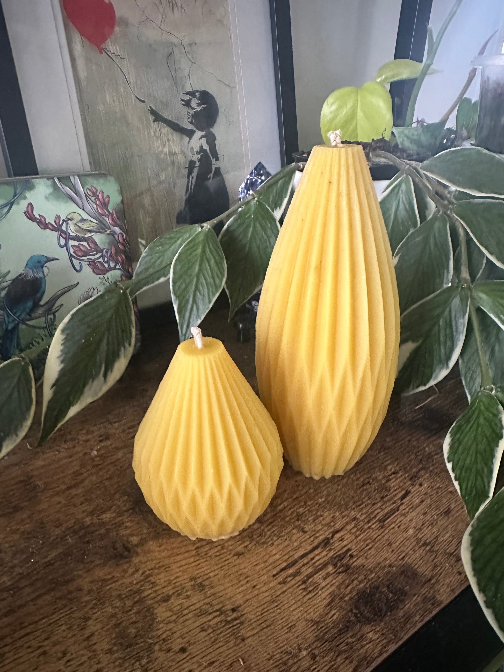 Hand-poured from pure beeswax, these lantern-style candles are crafted to bring both beauty and warmth into your home. Their natural golden hue and subtle honey fragrance create a calming, cozy atmosphere, while the lantern form offers a timeless, elegant glow. Made to burn cleanly and slowly, each piece is a sustainable choice that highlights the simple luxury of nature. Perfect as a pair for a dining table, mantle, or gift, these beeswax lanterns add a touch of handcrafted charm to any space.