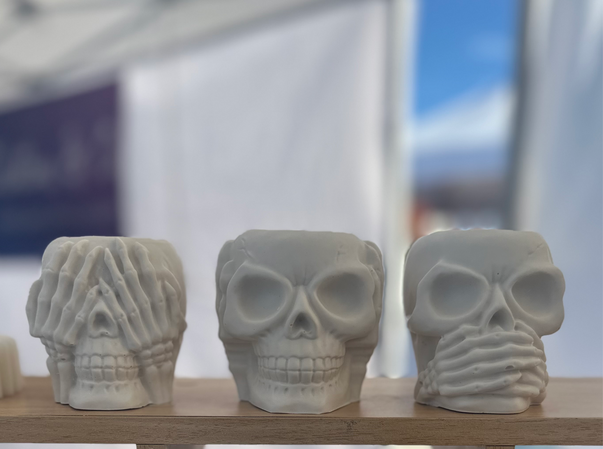 Handcrafted from premium Jesmonite, these skulls are not only eco-friendly and durable, but also feature a smooth, matte finish that adds a sophisticated touch to any space. Each vase serves as a striking decorative object while also providing a functional way to display your favorite flowers or small plants.
