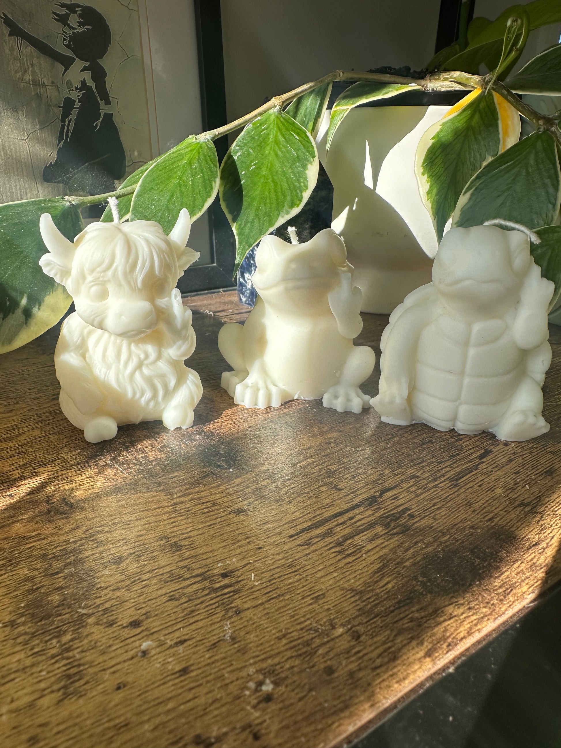 Introducing the wild and rude trio — hand-poured sculptural candles featuring a cow, turtle, and frog all serving unapologetic personality. This set blends modern design with bold character, making it an unforgettable gift or display piece for any space.